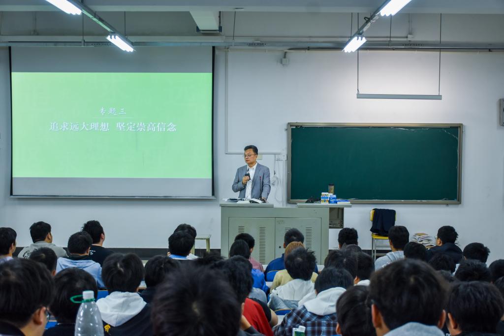 10月28日上午,学院党委书记、院长王立新走进2025级新生课堂,以《追求远大理想 坚定崇高信念》为题,为飞机制造与维修学院、通航航空与无人机学院的部分新生讲授了一堂“筑牢信仰之基,领航青春梦想”的思政课。