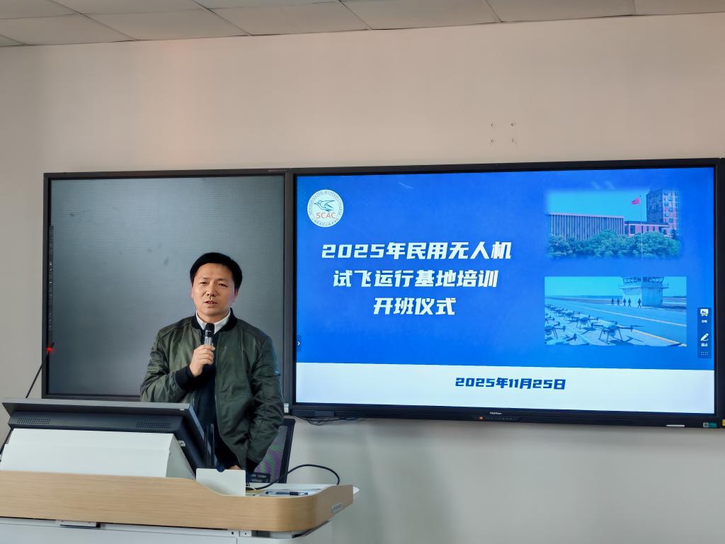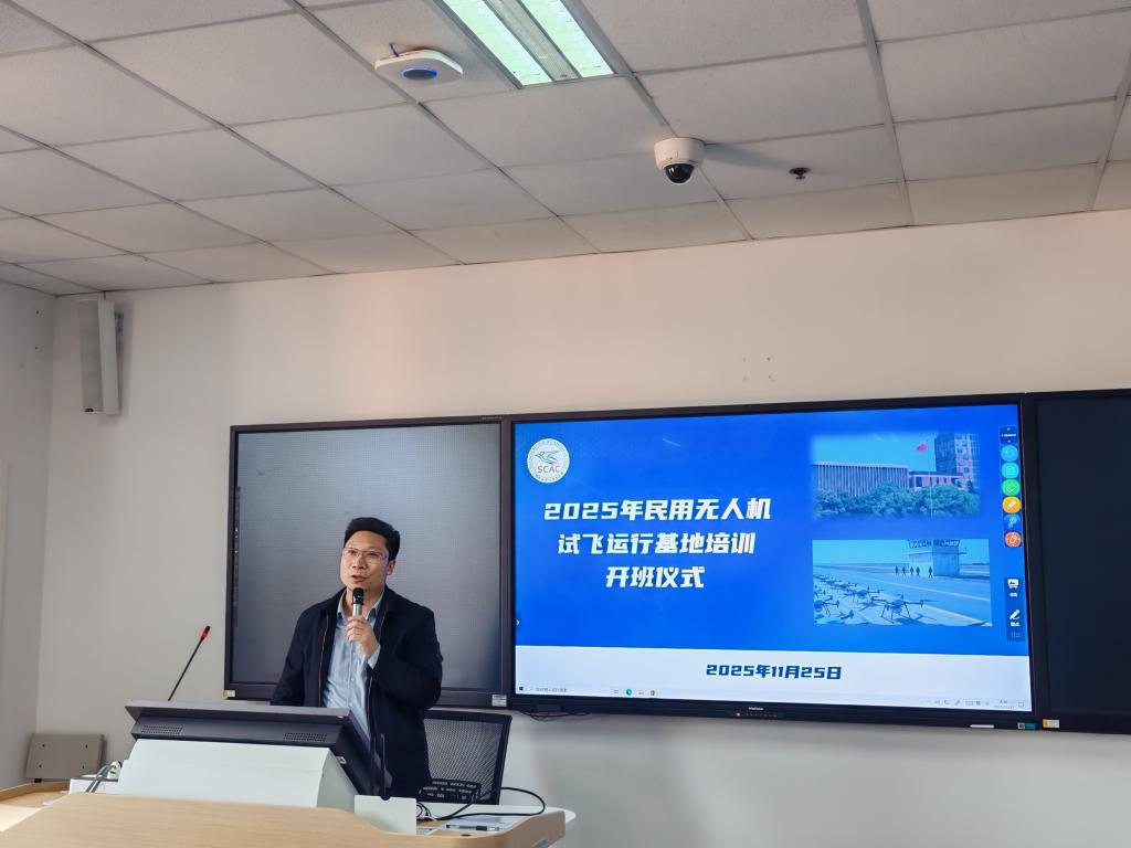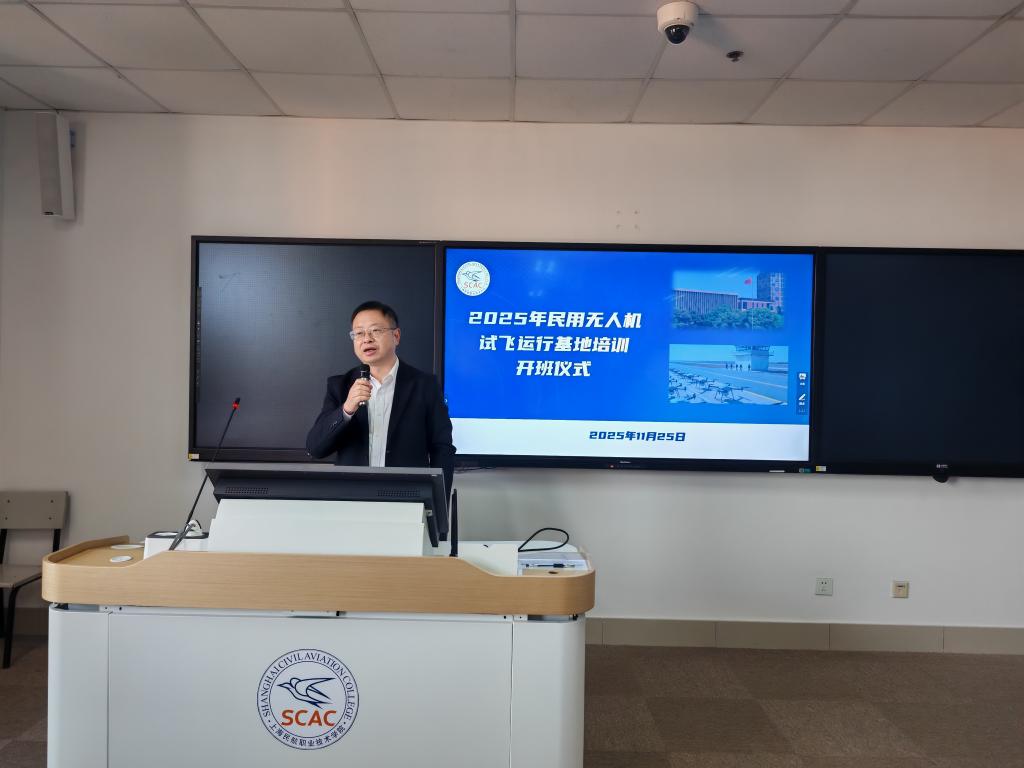 25日上午8点30分,培训班开班仪式举行我院通用航空与无人机学院副院长王晋誉代表主办方对民航华东管理局通航处、南京航空航天大学及各试飞基地的领导与代表表示热烈欢迎。他表示,低空经济作为战略性新兴产业的关键赛道,发展前景广阔。本次培训以安全为基石、技术赋能为驱动,通过政校企三方深度协同,致力于为行业培育一批既精通政策法规、又擅长技术管理的复合型人才。