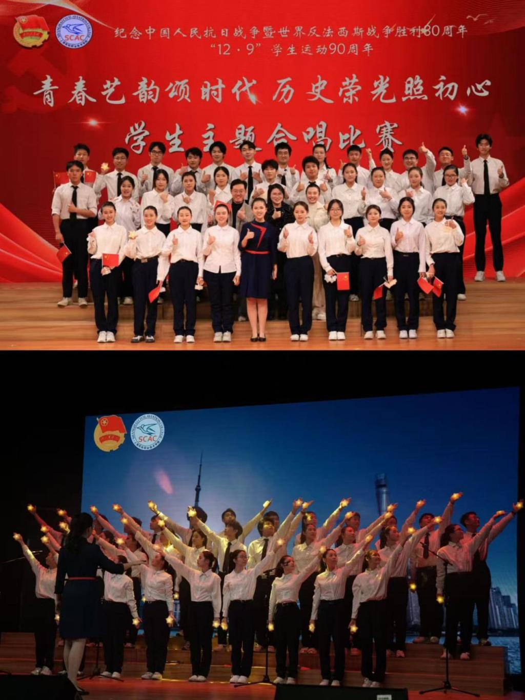 八秩光阴,奔流如歌,洗练历史荣光;青春艺韵,飞扬似火,点燃时代舞台。为纪念中国人民抗日战争暨世界反法西斯战争胜利80周年、“12·9”学生运动90周年,12月5日由学院团委主办的“青春艺韵颂时代 历史荣光照初心”学生主题合唱比赛暨第十一届校园文化艺术节闭幕式在浦东校区大礼堂举行。学院党委副书记倪轶群及各相关部门负责人莅临活动现场。汪宁、钱佳琦、刘倩倩三位老师担任评委。