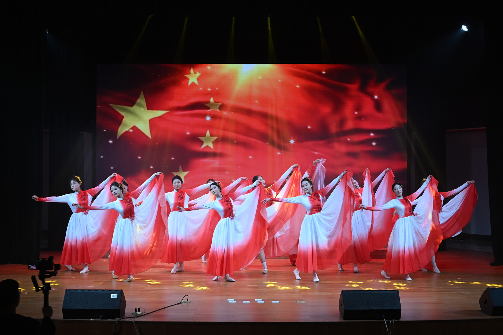 在上篇收尾环节,舞蹈社同学以《我爱你中国》登场,用灵动的肢体语言诠释了对祖国的赤诚热爱。