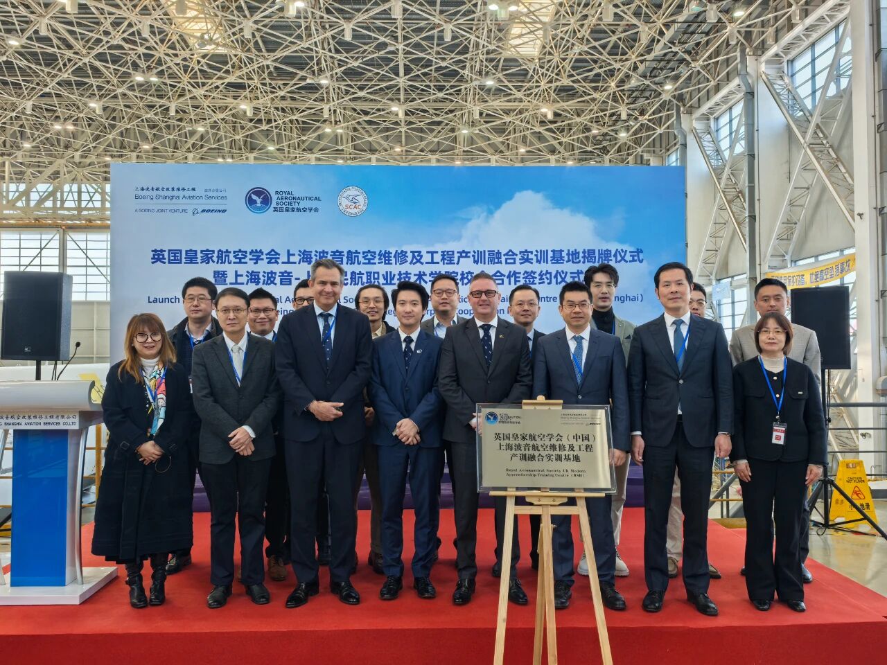 学院副院长罗玉梅出席仪式并代表学院签约,同时受邀参加英国皇家航空学会上海波音航空维修及工程产训融合实训基地揭牌仪式。此次合作标志学院与波音公司迈入产教深度融合的新阶段。